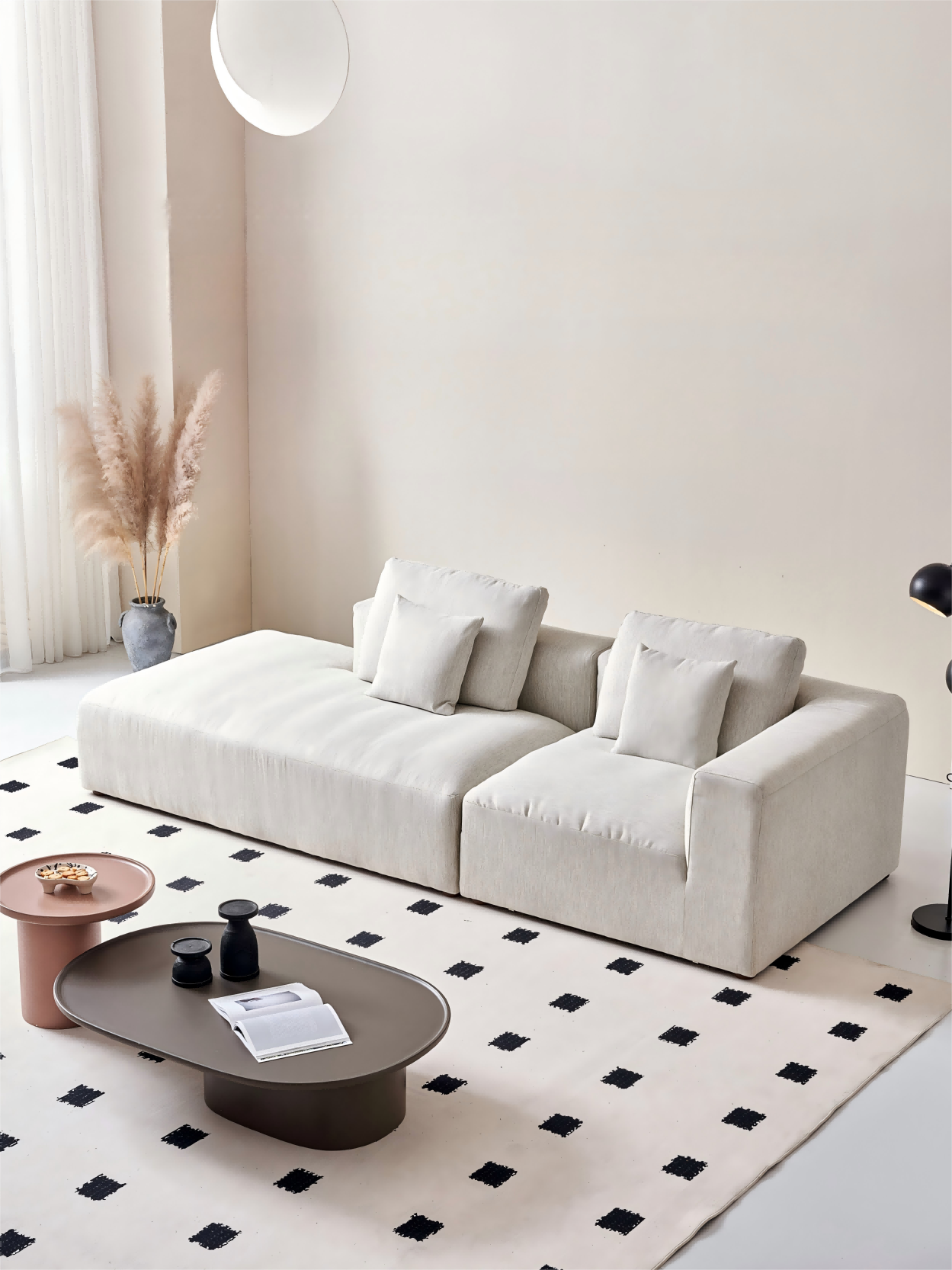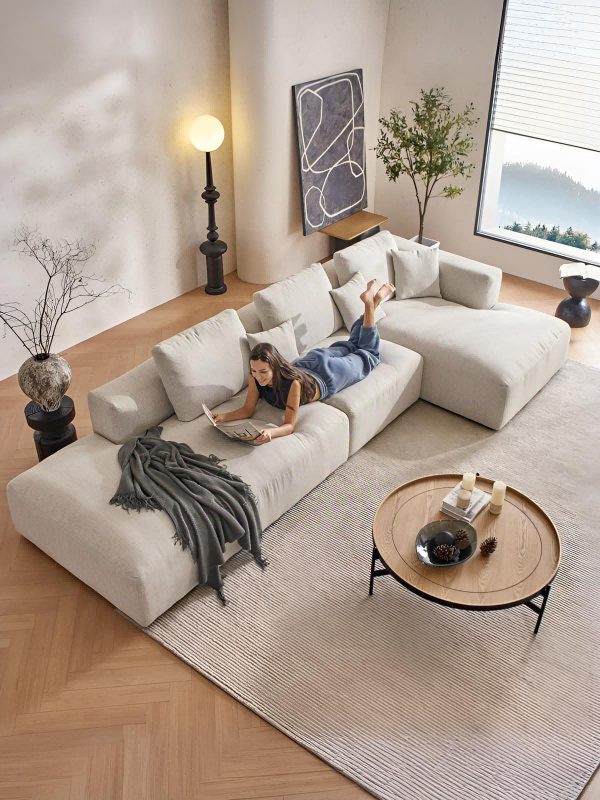 This is a gorgeous, super comfortable couch that fits into a smaller sized living space without looking bulky. I love that I can add on to it if I ever move into a bigger space. It looks great with the feathers chair too. The delivery was smooth and furniture easy to set up!
