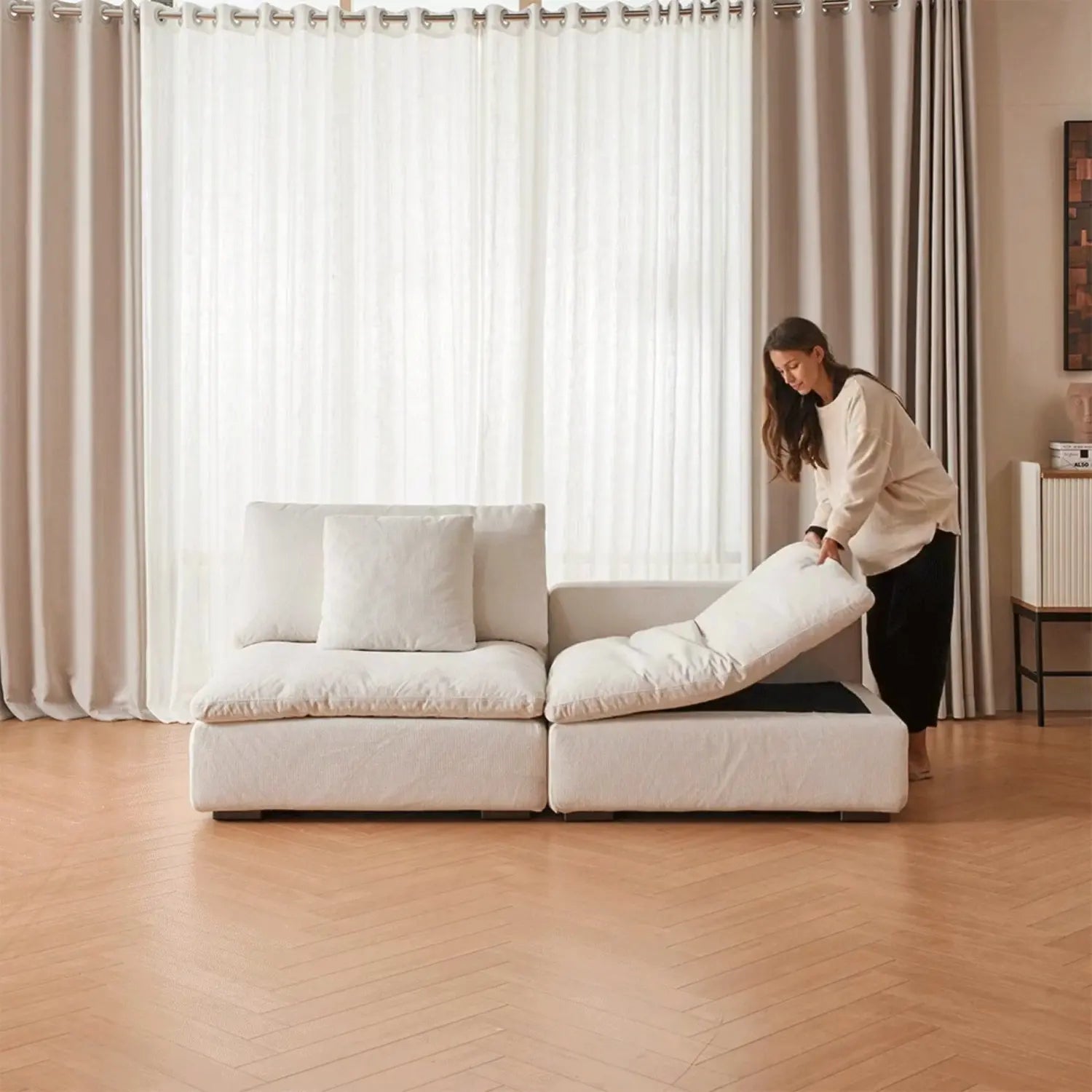 We believe in tailored comfort. That's why our cushions are designed to be easily refillable, allowing you to adjust the filling to your heart's content. Whether you crave more support or deeper softness, your Malibu sofa adapts to you.