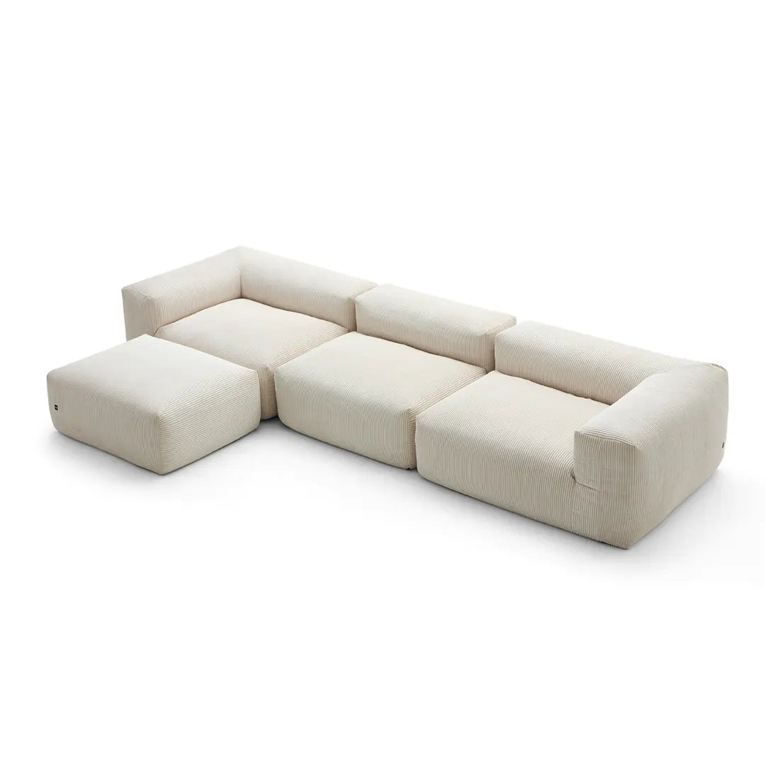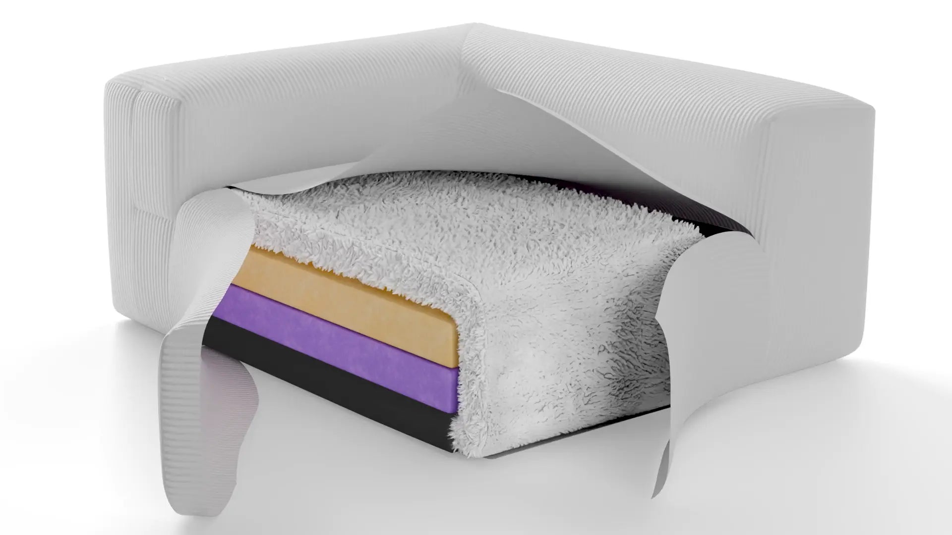 The sofa is free from hard frames or wire springs and is made from layers of cotton cushion, feathers, memory foam, latex foam, and high-resilience foam, all covered in plush corduroy to ensure you never compromise on comfort.