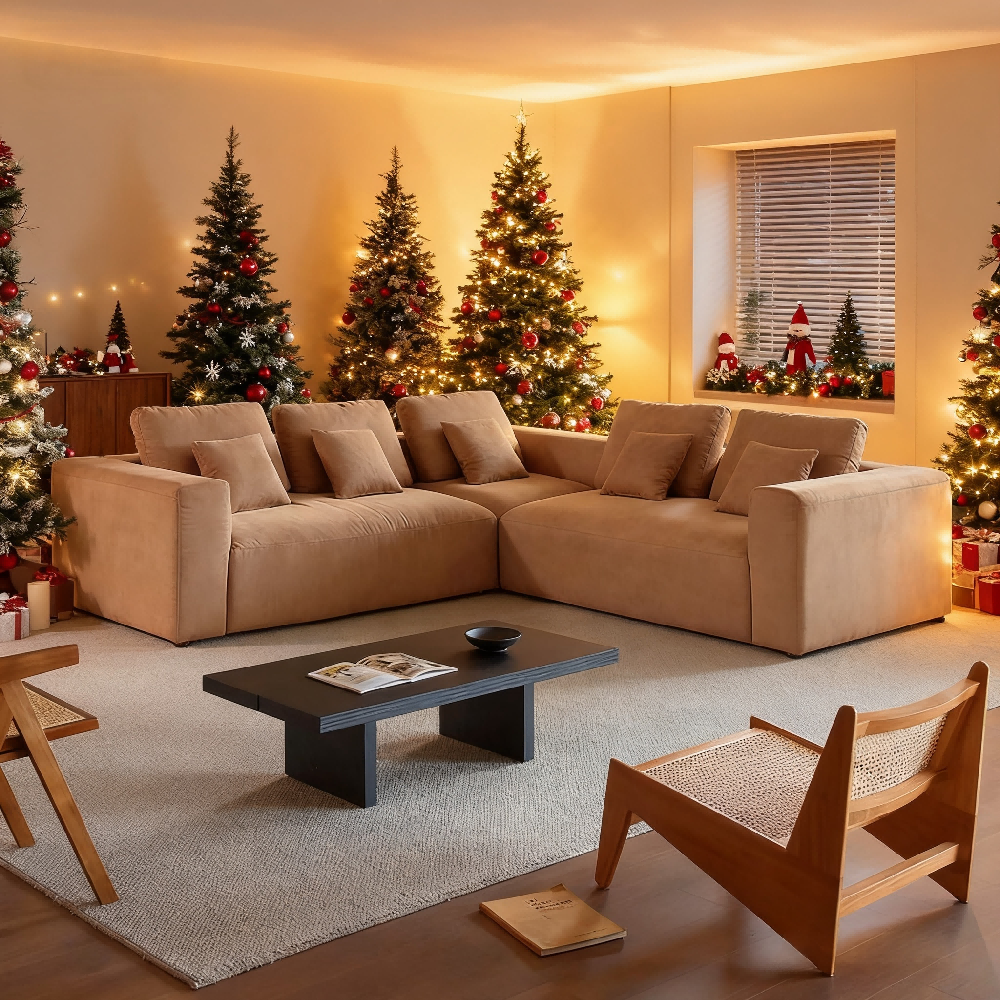 The 5th Sectional Sofa, spill-proof & pet-friendly, comes in 3 colors. Perfect for Christmas gatherings, resistant to stains, water, & scratches.