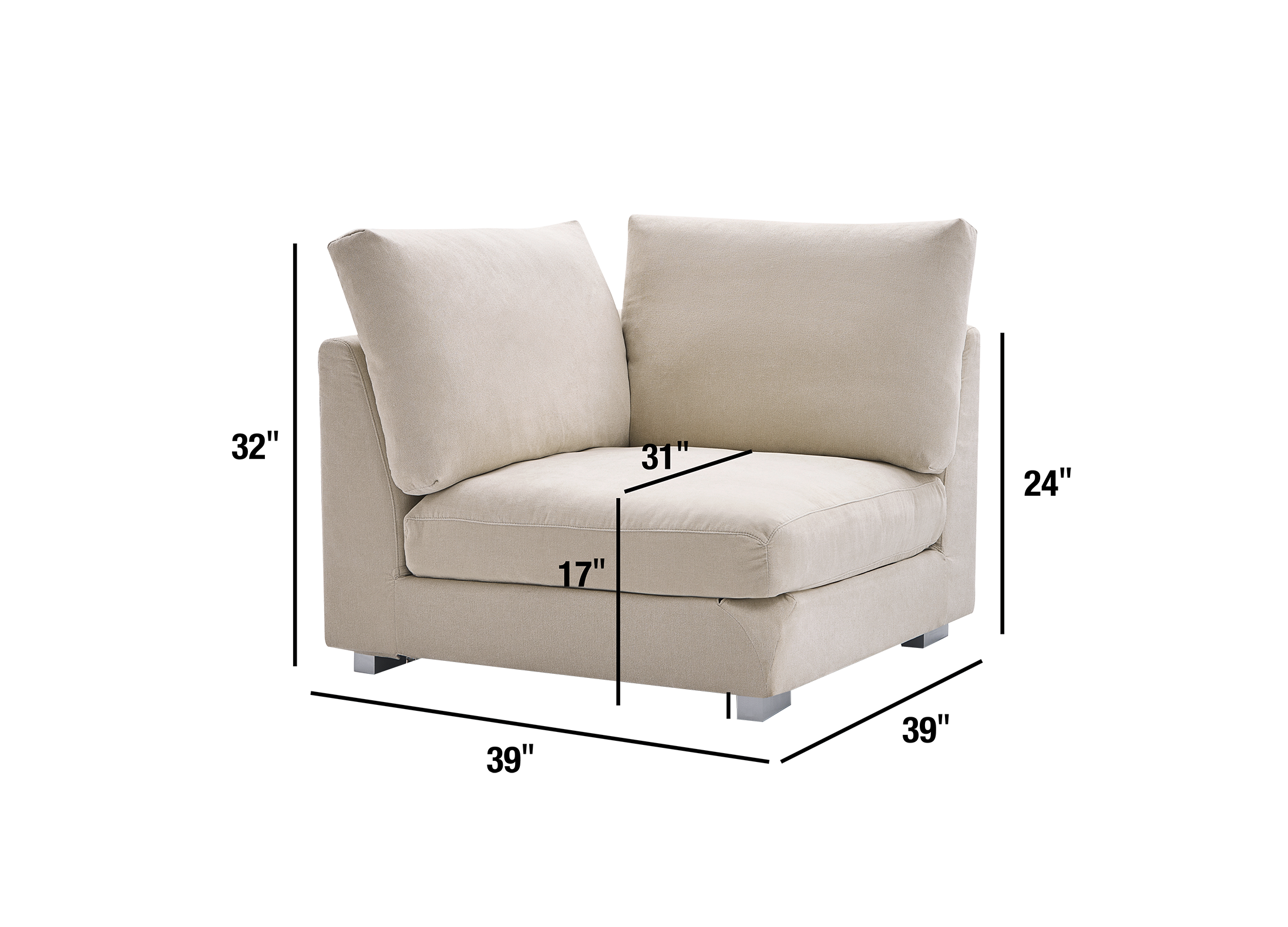 Feathers Modular Corner Sofa Seat - 39 Inches