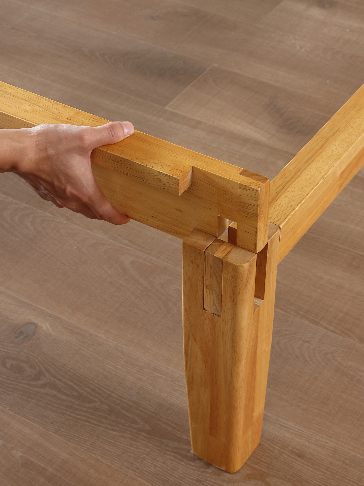 Just one screw, two hands, and five minutes of your time. It’s that easy. A flawless Japanese locking structure on the frame, and solid slat construction, with perfectly spaced slats for breathability and support. No need for a box spring.